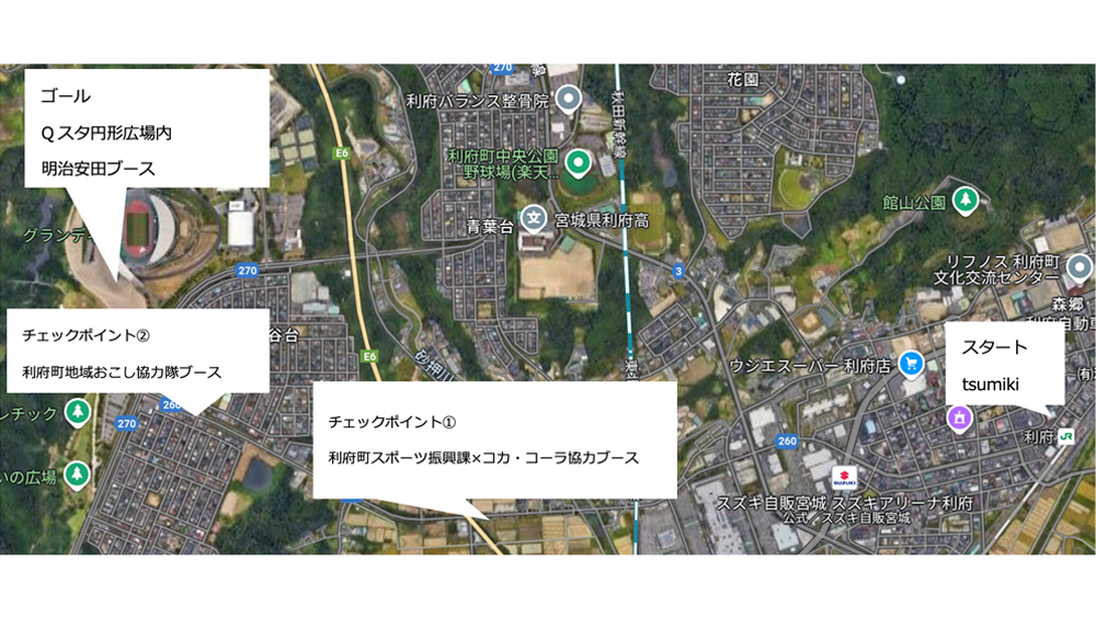 ベガルタ仙台はホームゲーム開催地である利府町の全面協力のもと、「RIFU×VEGAウォークsupported by明治安田」を実施いたします。JR利府駅をスタートしてゴールのキューアンドエースタジアムみやぎ(Qスタ)までを歩くことで「利府」の魅力を体感していただくとともに、参加者自身の健康づくりを応援していくウォーキングプロジェクトです。