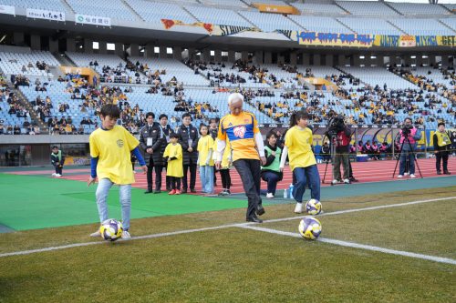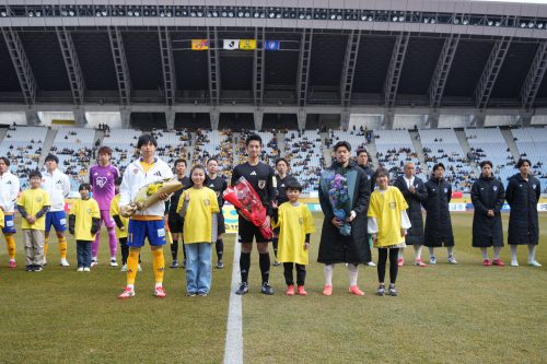 試合前に両チーム選手や審判へ激励の花束を贈呈いただきます。
