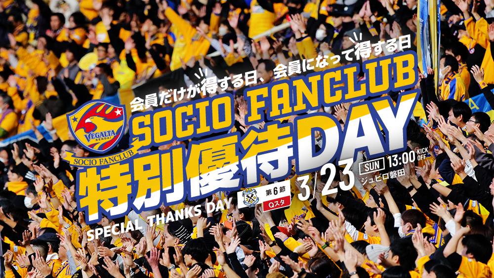 <3月21日更新>【3月23日 J2 磐田戦】SOCIO FANCLUB特別優待DAY開催のお知らせ