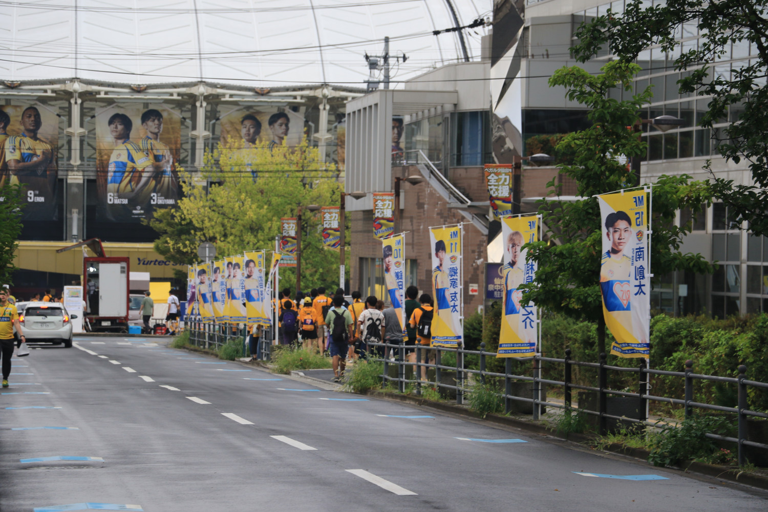 ベガルタ仙台・市民後援会ホームページの事前募集で当選されたグラン世代のベガサポのみなさまでベガルタロード(泉中央駅~スタジアム)の選手ののぼりを立てていただきます。