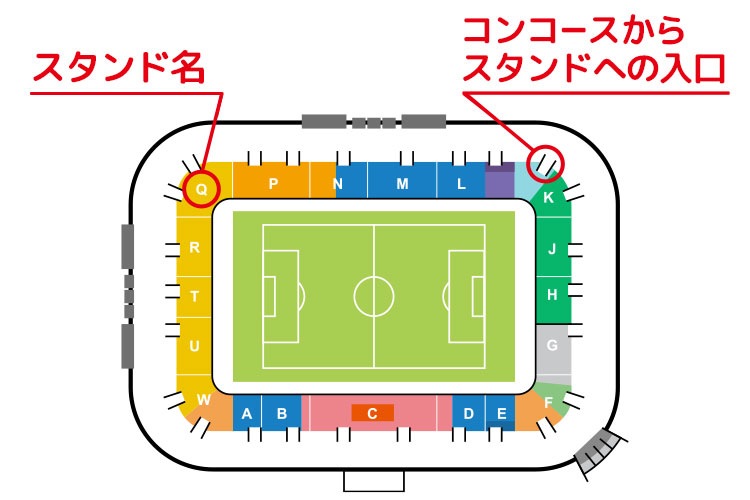 ※「サポーター応援エリア・ホーム」「ゴール裏北・ホーム」「ゴール裏南・ホーム」「ゴール裏・ビジターは自由席として運用します。