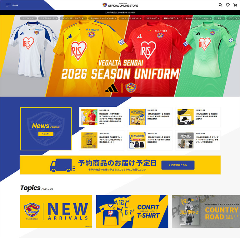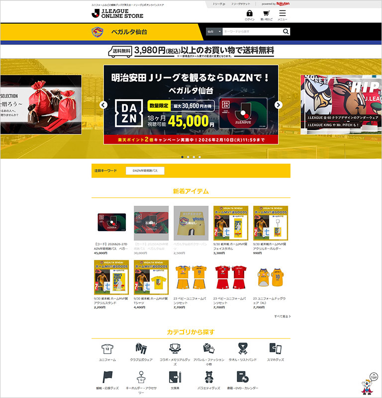 ベガルタ仙台オフィシャルオンラインストアならご自宅からグッズがお買い求めいただけます。